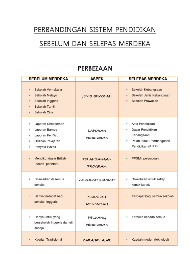 Perbandingan Sistem Pendidikan Sebelum Dan Selepas Merdeka Pdf